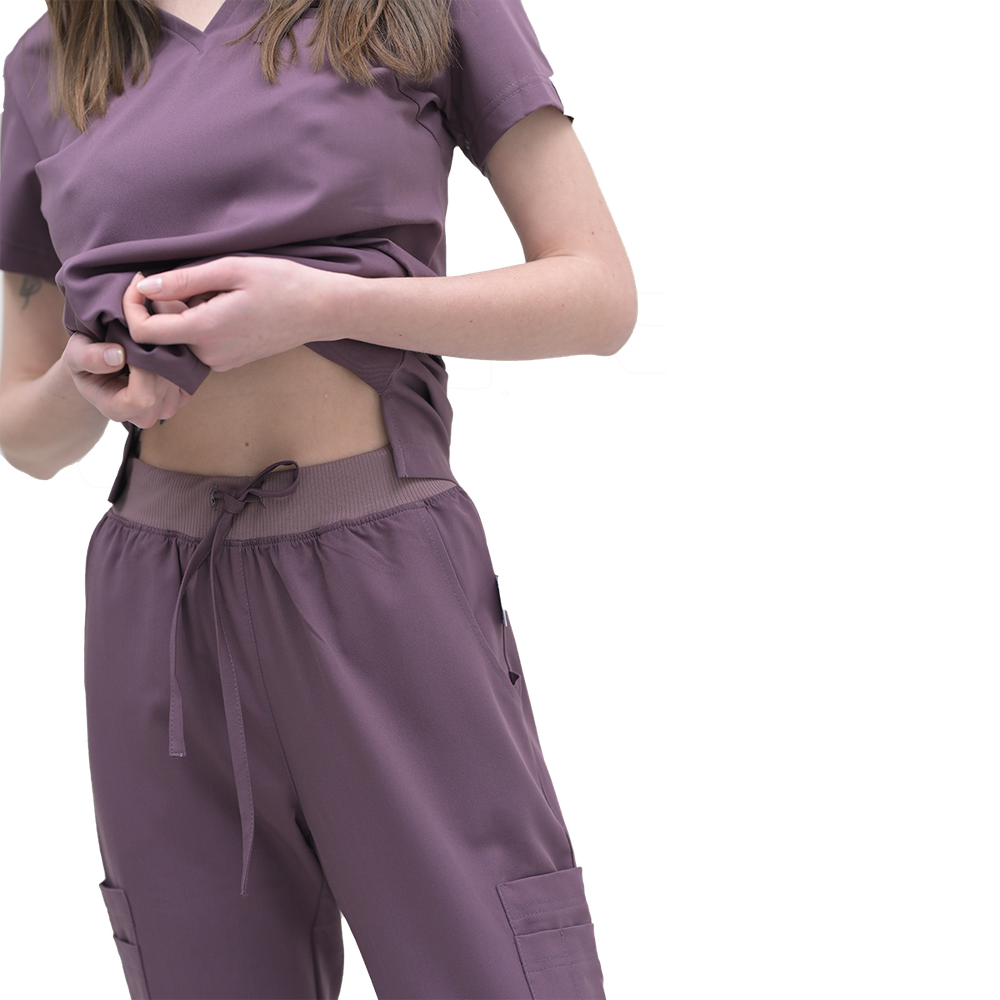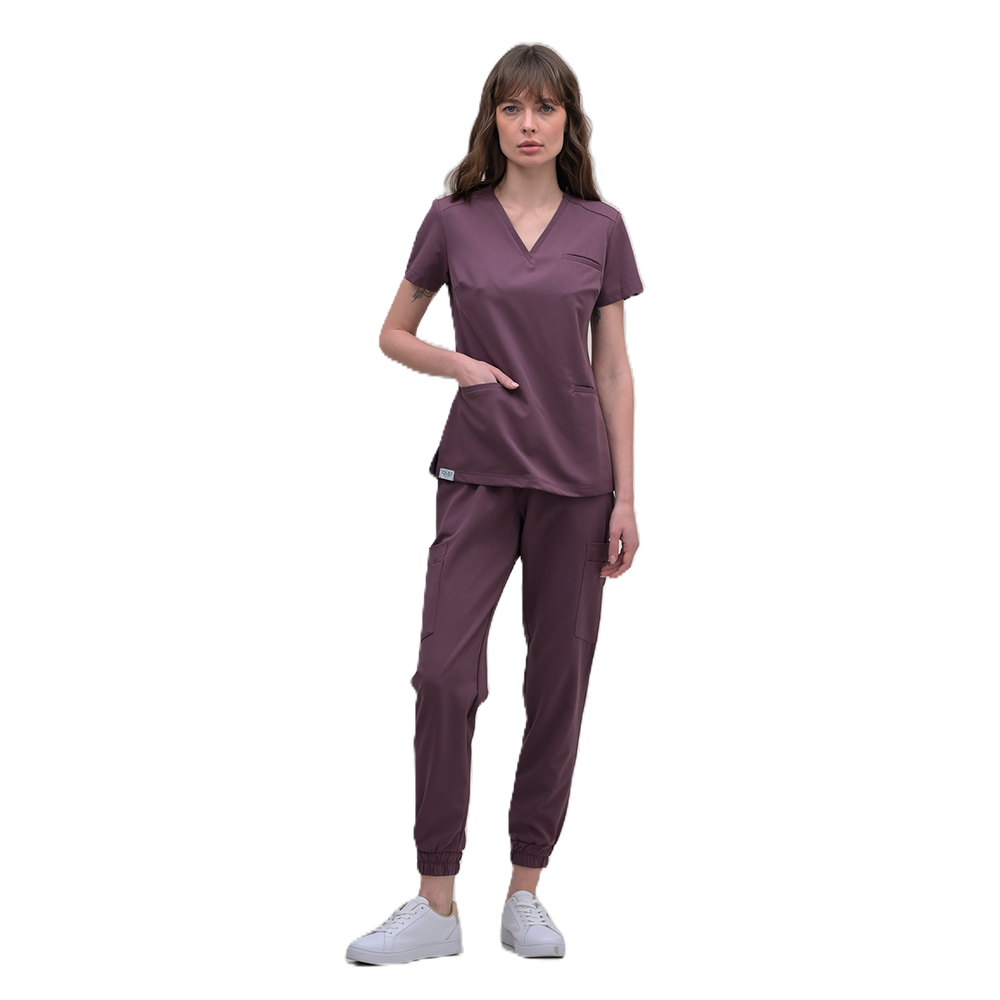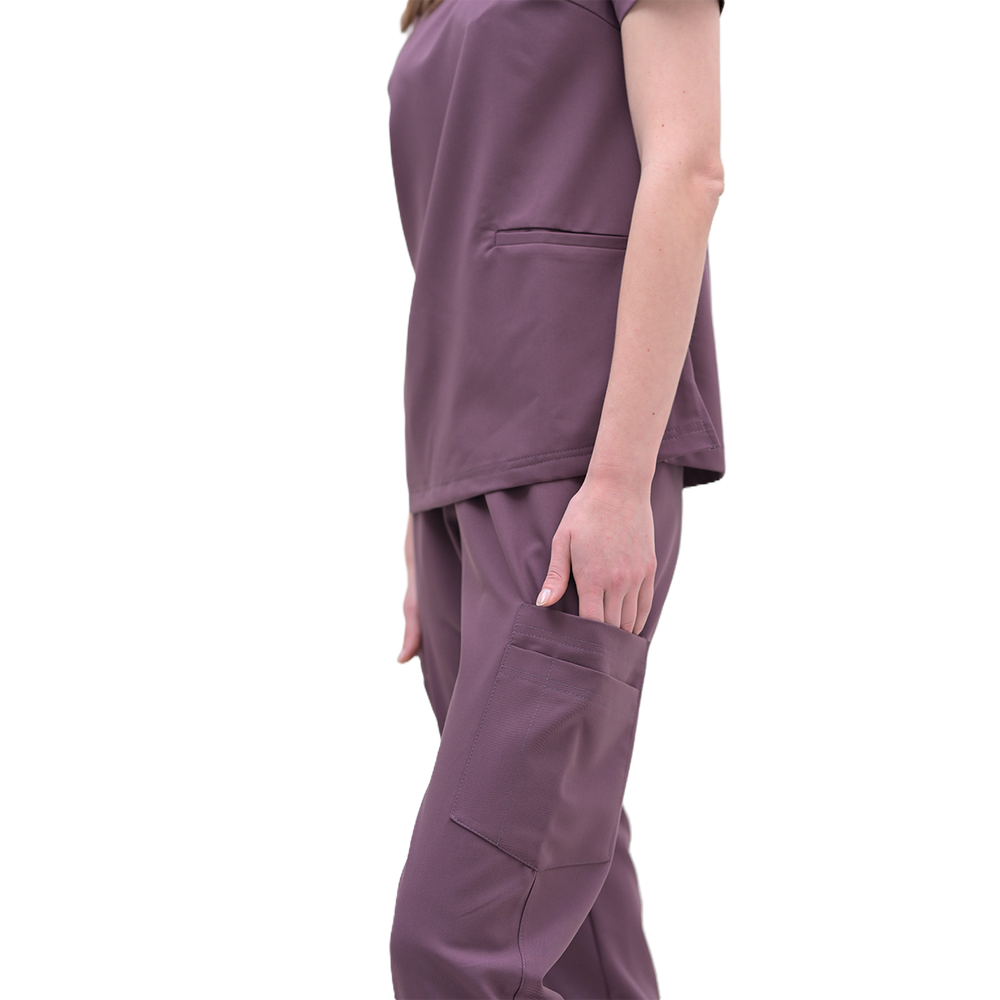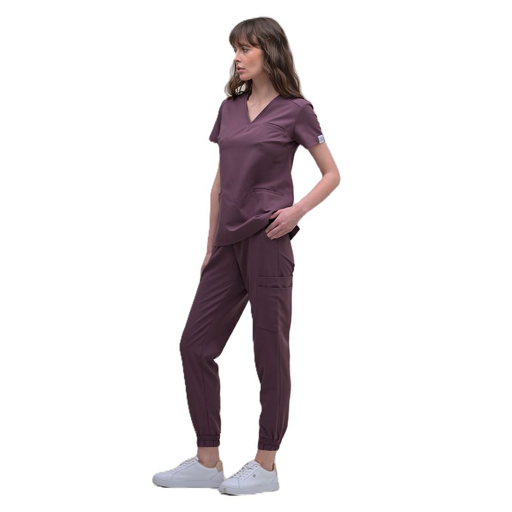 Костюм женский хирургический приталенного силуэта. Короткий рукав, брюки-джоггеры