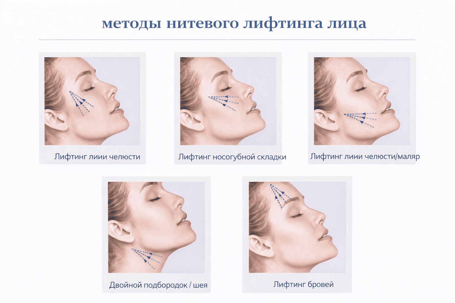Выбор конкретной конструкции зависит от цели тредлифтинга, актуального состояния кожи, индивидуальных особенностей и показаний конкретного пациента.