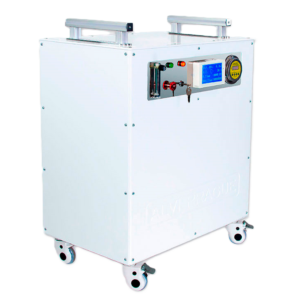 Все ключевые параметры аппарата, включая давление газа, температуру кислородной смеси, длительность процедуры и общее время работы, контролируются автоматически и отображаются на дисплее. Для обеспечения безопасности аппарат оснащен защитой от перепадов напряжения, системой аварийного оповещения при превышении рабочих параметров и кнопкой аварийного выключения.