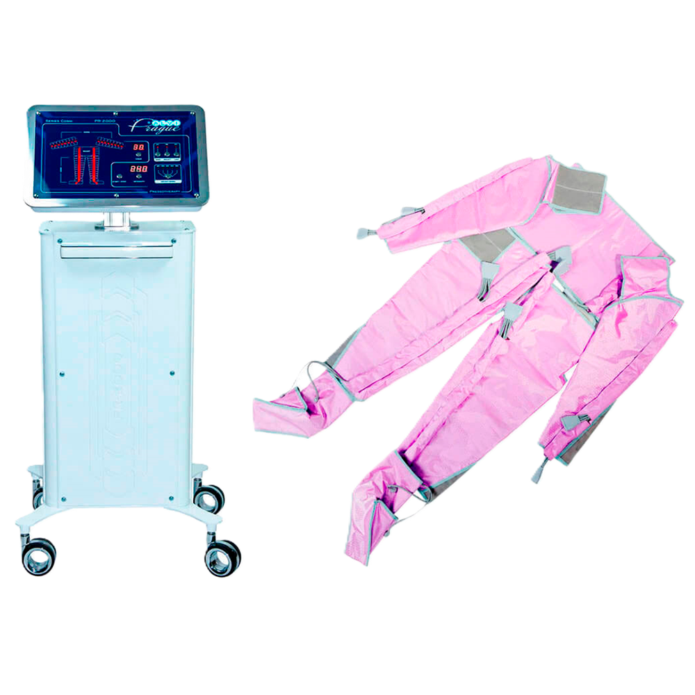Аппарат прессотерапии PR-2000 – высокотехнологичное оборудование для проведения комплексного массажа сжатым воздухом в косметологических кабинетах, спа-салонах, клиниках эстетической медицины, санаториях и пансионатах. Устройство обеспечивает автоматизированный массаж конечностей и фрагментов корпуса с помощью программируемого переменного давления в эластичных пневматических манжетах, входящих в состав массажного костюма.