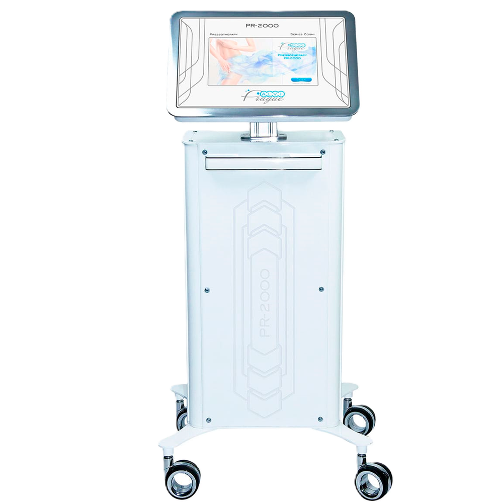 Конструкция аппарата включает в себя два малошумных компрессора, процессор для контроля давления, пневмоблок и пневмокабели для подачи воздуха, а также электронный блок управления с монитором. Пресотерапия на PR-2000 реализуется через волнообразную циркуляцию воздуха, стимулирующего кожу, подкожную клетчатку, мышцы, лимфатические и кровеносные сосуды, а также нервные ветви и узлы.