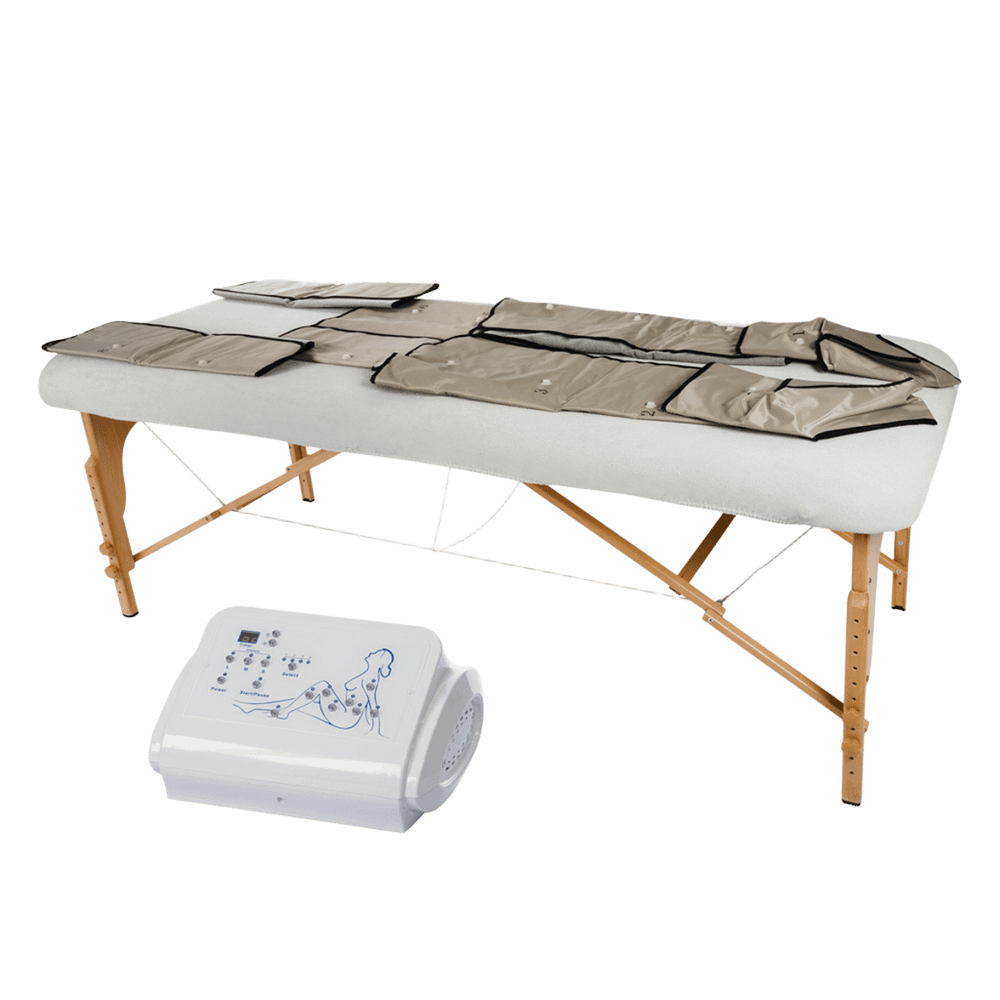 Оборудование оснащено 36 камерами надува, которые обеспечивают тщательную обработку всех зон костюма (сапоги, ботфорты, корсет, рукава), подключённых к корпусу с помощью пневмокабелей. Плавное давление от 100 до 240 мм рт. ст. и 6 автоматических программ гарантируют клинически правильный эффект.