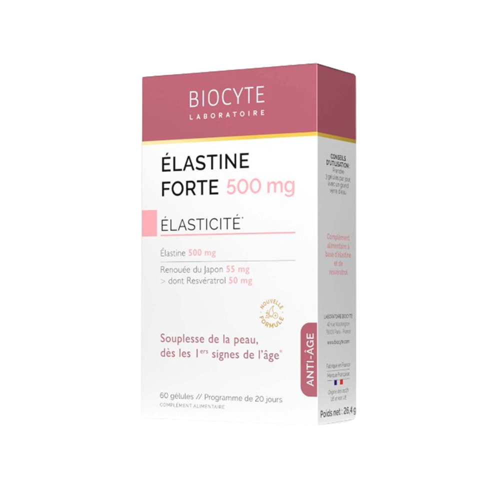 Suplement diety w formie kapsułek na bazie elastyny. Elastyna to białko, które zapewnia jędrność tkanek łącznych, w tym skóry, zapobiega powstawaniu zmarszczek, wspiera tonus i elastyczność skóry.