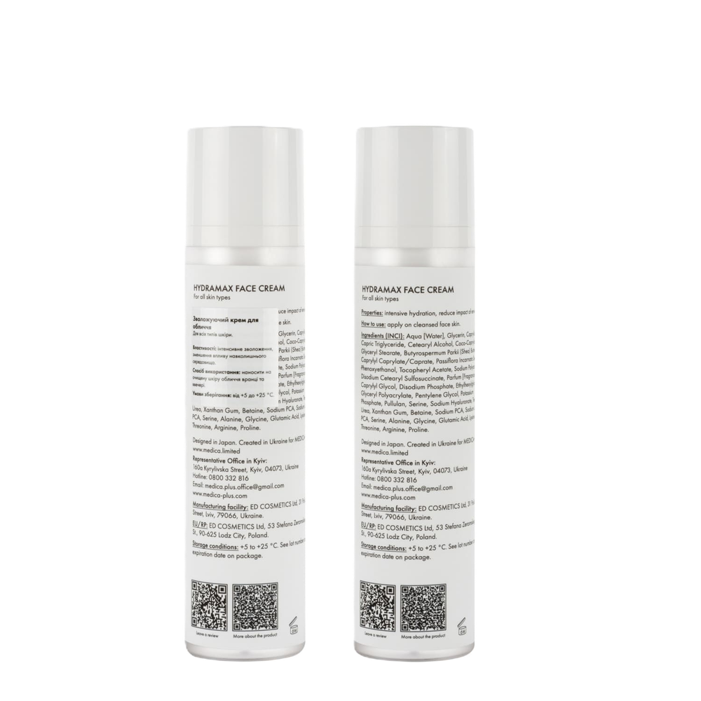 Крем для лица MEDICA+ HYDRAMAX FACE CREAM создан для того, чтобы восполнять запас влаги, укреплять барьер и поддерживать кожу мягкой, упругой и здоровой.