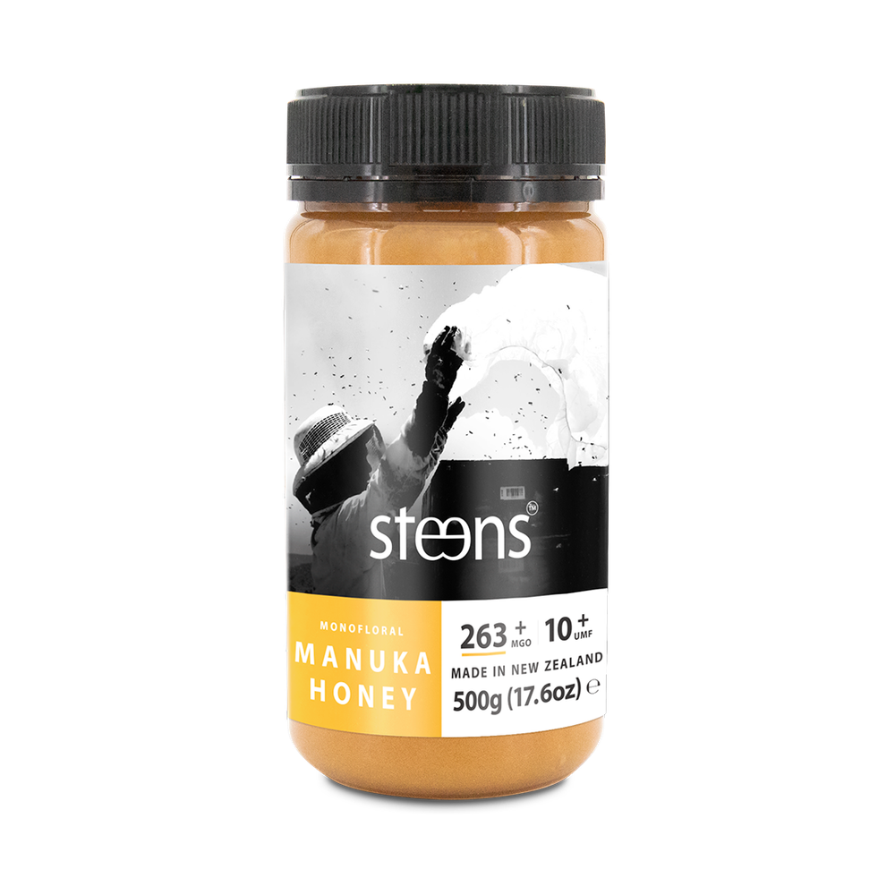 Монофлорный мед из мануки с базовым уровнем терапевтической активности UMF 10+ (MGO 263+), сертифицирован в соотвествии со стандартами Новой Зеландии*. Благодаря запатентованому методу сбора и минимальной обработке, Steens производит «чистый» сырой мед с натуральной кристаллической структурой и насыщенным, глубоким вкусом. Cодержит в 15 раз больше биоактивной пыльцы, чем у других ведущих брендов.