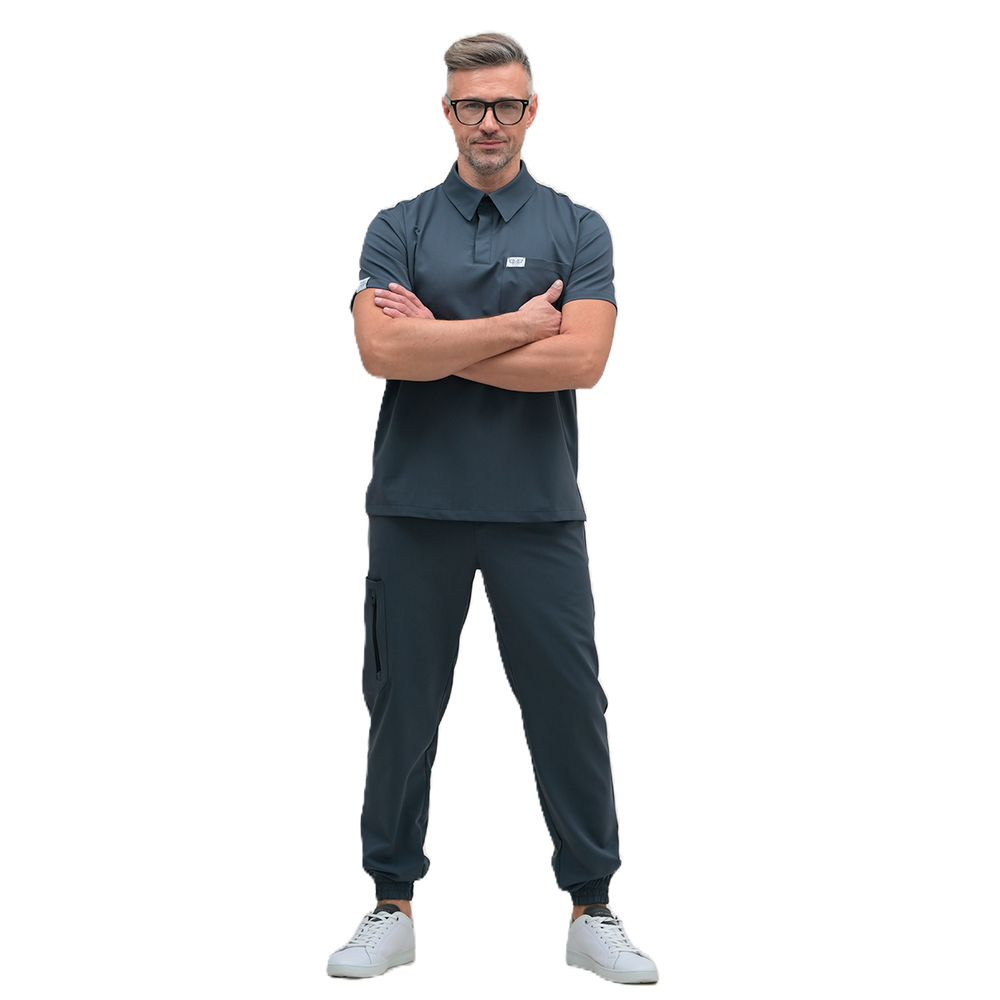 Костюм хирургический мужской. Рукав короткий. Брюки-джоггеры прямого кроя