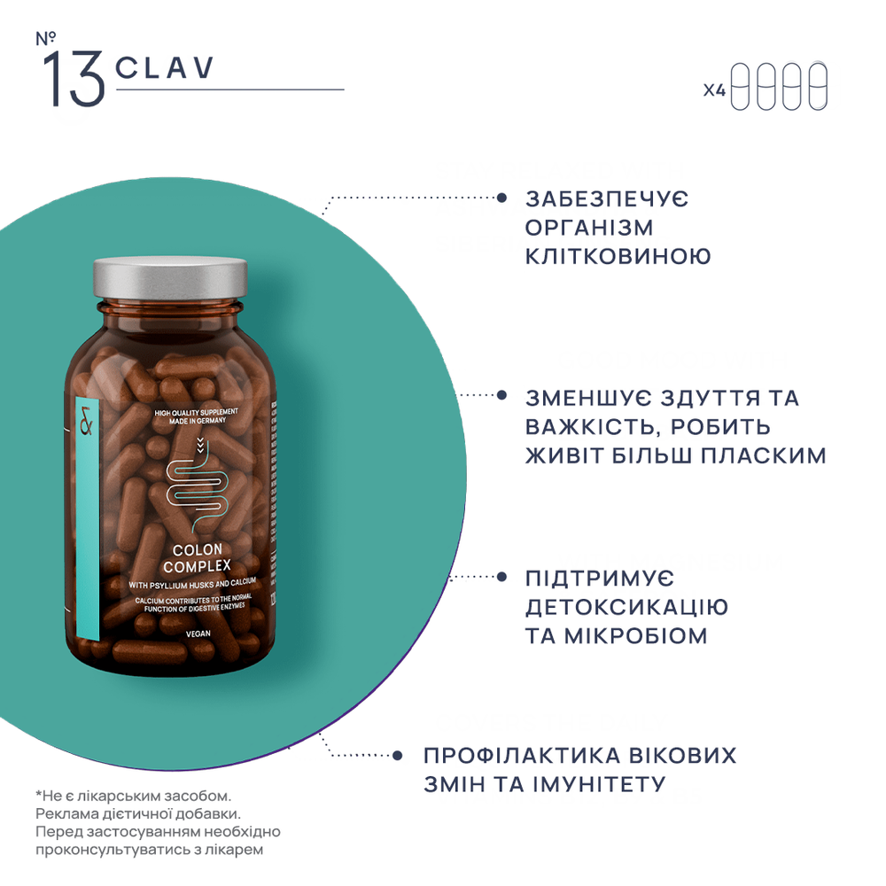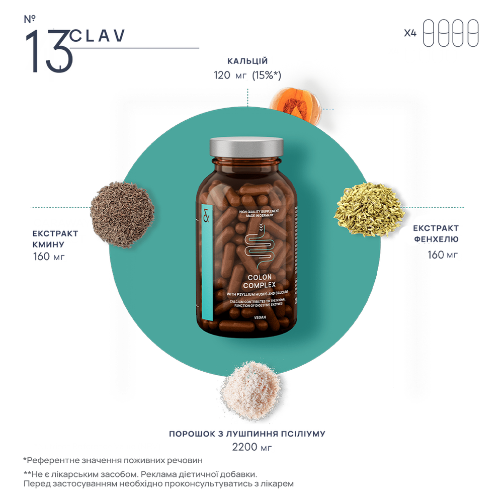 Диетическая добавка в форме капсул на основе растительных экстрактов. Формула создана для мягкой поддержки пищеварительной системы и общего самочувствия. Капсулы с шелухой псиллиума сочетают преимущества натуральной клетчатки, кальция, экстракта фенхеля и тмина, обеспечивая комфортное пищеварение, регулярность и ощущение легкости. Эти компоненты помогают поддерживать здоровый кишечник, способствуют естественному очищению организма и нормализации микрофлоры.