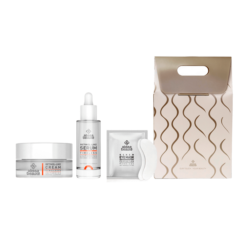 - TIMELESS Retinol-Like Cream (50 мл): всесезонный крем, дополняющий действие сыворотки: улучшает синтез коллагена, увлажняет и создаёт бархатистый эффект. Успокаивающий пептид делает его комфортным даже для чувствительной кожи.