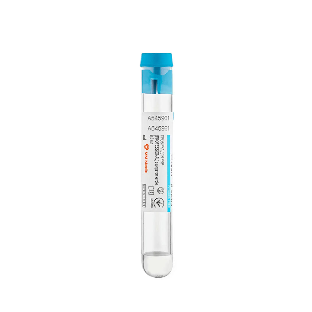 Стерильная вакуумная пробирка, предназначенная для получения аутологической плазмы, обогащенной тромбоцитами, хорошей для проведения PRP-терапии. Пробирка обеспечивает получение плазмы с повышенной концентрацией тромбоцитов — в 2-4 раза больше по сравнению с их уровнем в цельной крови, что делает ее эффективным инструментом для PRP-процедур.