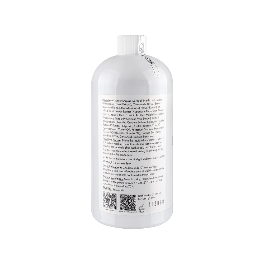 Состав (INCI): Aqua [Water], Sorbitol, Urtica dioica Leaf Extract, Chamomilla Recutita Extract, Hypericum perforatum Extract, Achillea Millefolium Extract, Vaccinium Vitis Extract, Magnesium Chloride, Calcium Sulfate, Calcium Chloride, Sodium Chloride, Glycerin, Xylitol, Betaine, PEG-40 Hydrogenated Castor Oil, Potassium Sorbate, Essential Oil Spearmint, Saccharinum Natricum, Disodium EDTA, Citric Acid, Sodium Benzoate.