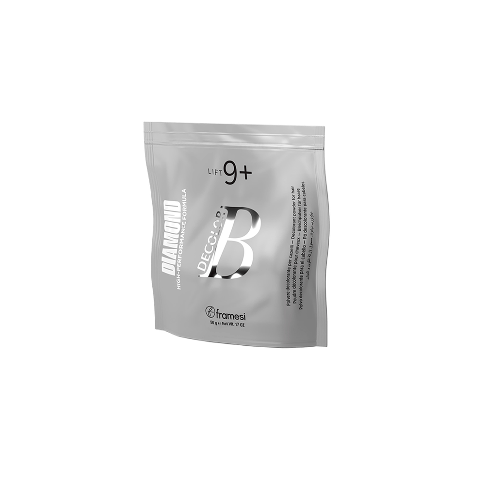 Порошок для обесцвечивания волос с алмазной пудрой и гуаровой камедью. Содержит масло камелии и гиалуроновую кислоту. Полирует кутикулу, что способствует большему сиянию и точному эффекту. Имеет уровень обесцвечивания 9 +.