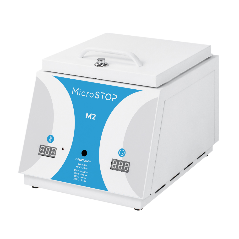 Стерилизатор MicroStop М2 подходит для крупных салонов красоты и крупных нейл-студий, где одновременно работают 2 или 3 мастера. Управляется с помощью одной кнопки.