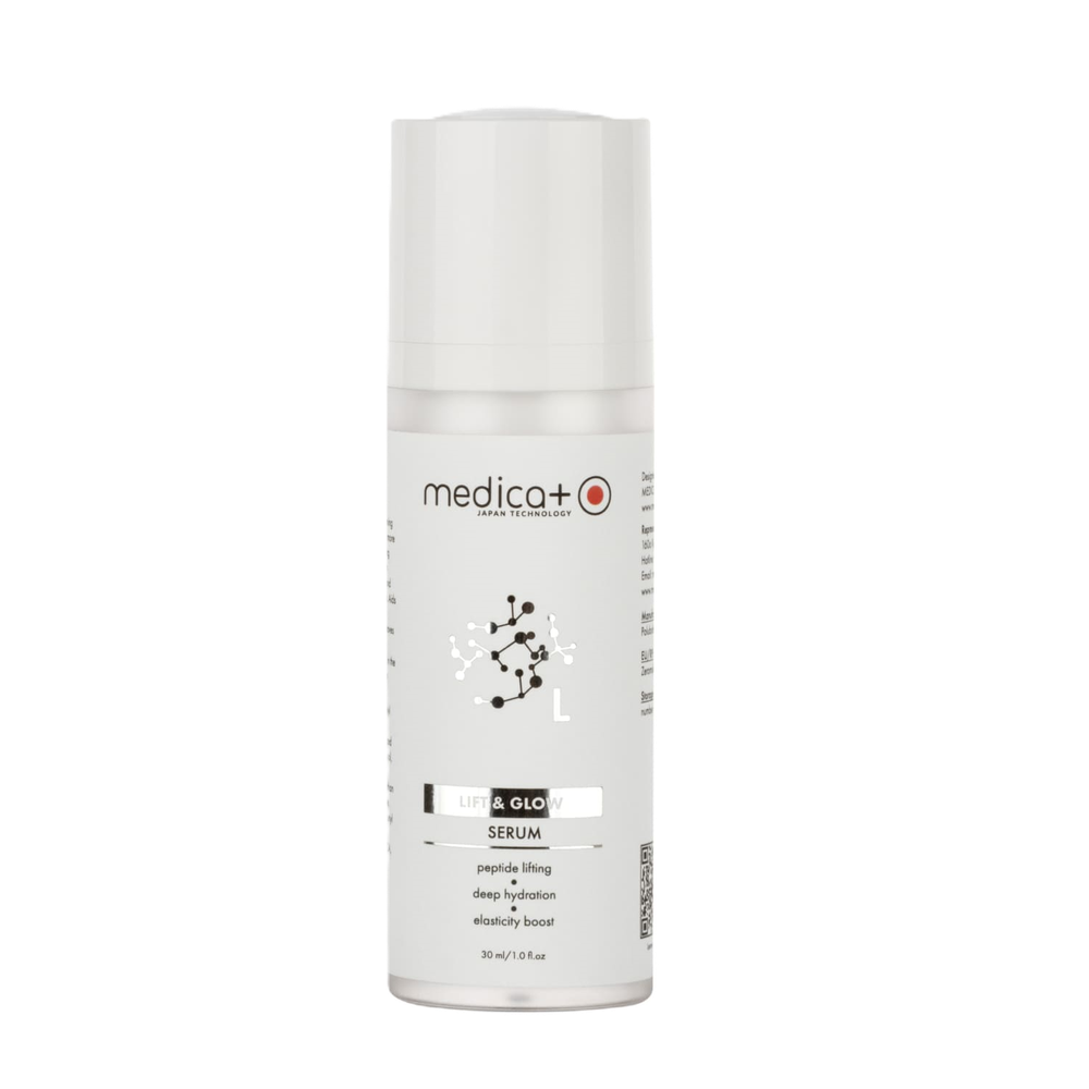 MEDICA+ LIFT & GLOW Serum – инновационная лифтинг-сыворотка для лица, обеспечивающая мгновенное подтягивание кожи и длительное восстановление её упругости. Формула сочетает мощный японский NMF-комплекс с аминокислотами (Betaine, Sodium PCA, Sodium Lactate, PCA, Serine, Alanine, Glycine, Glutamic Acid, Lysine HCL, Threonine, Arginine, Proline) и увлажняющими факторами, которые глубоко насыщают кожу влагой, укрепляют барьер и возвращают упругость и естественное сияние.