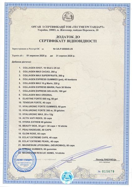 - Використання ліпосомальної мікроінкапсуляції — для максимальної біодоступності активних компонентів;