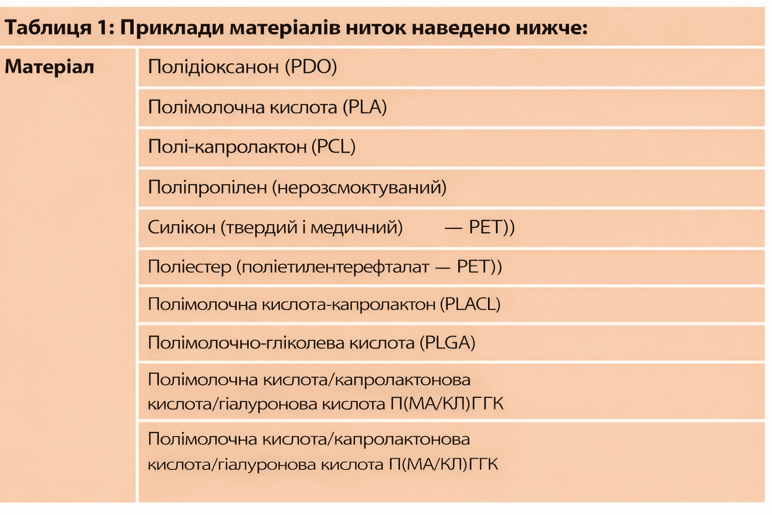 - комбіновані матеріали (PDO+PCL або PDO+PLLA).