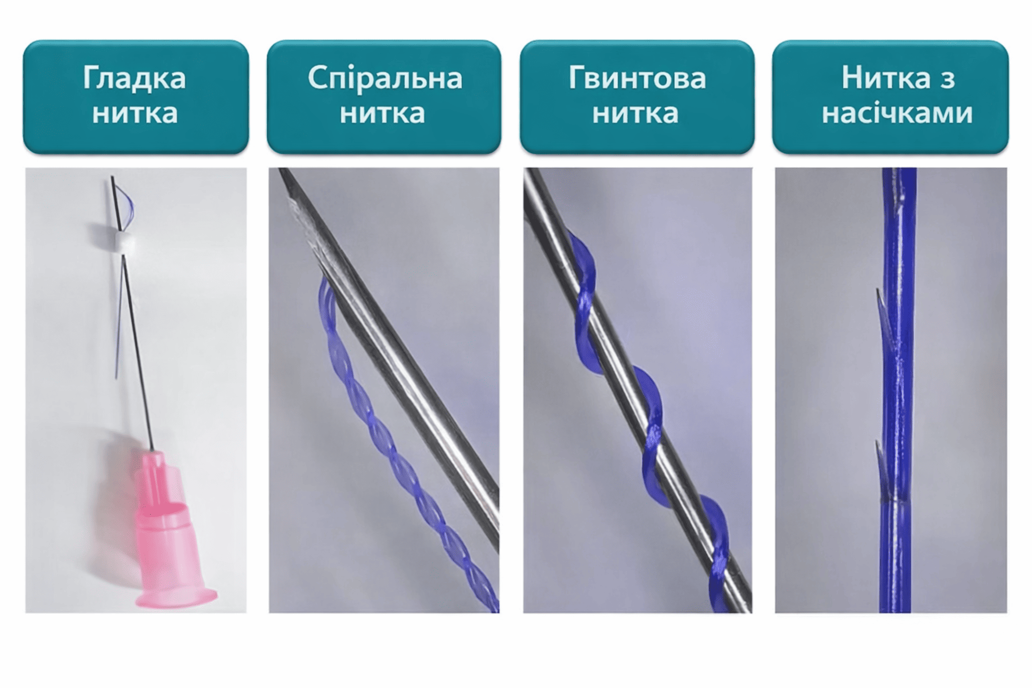 Вибір конкретної конструкції залежить від мети тредліфтингу, актуального стану шкіри, індивідуальних особливостей і показань конкретного пацієнта.