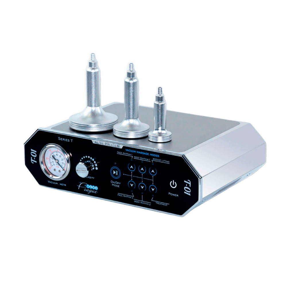 Апарат вакуумно-роликового масажу T-01 належить до преміального сегменту косметологічного обладнання, але пропонується за доступною ціною. Він призначений для поєднаної фізіотерапії проблемних зон обличчя та тіла завдяки комплексній дії вакууму і сферичних роликів на шкіру та глибші тканини.