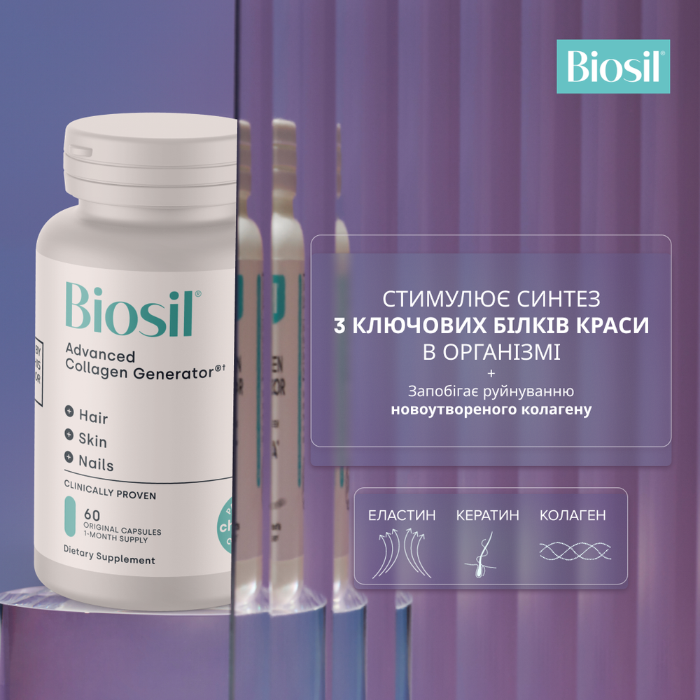 Дієтична добавка у формі капсул що містить комплекс ch-OSA® — клінічно підтверджену та запатентовану форму холін-стабілізованої ортокремнієвої кислоти. Має подвійну дію: cтимулює природній синтез колагену, еластину та кератину, одночасно захищаючи волокна колагену та еластину від руйнування.