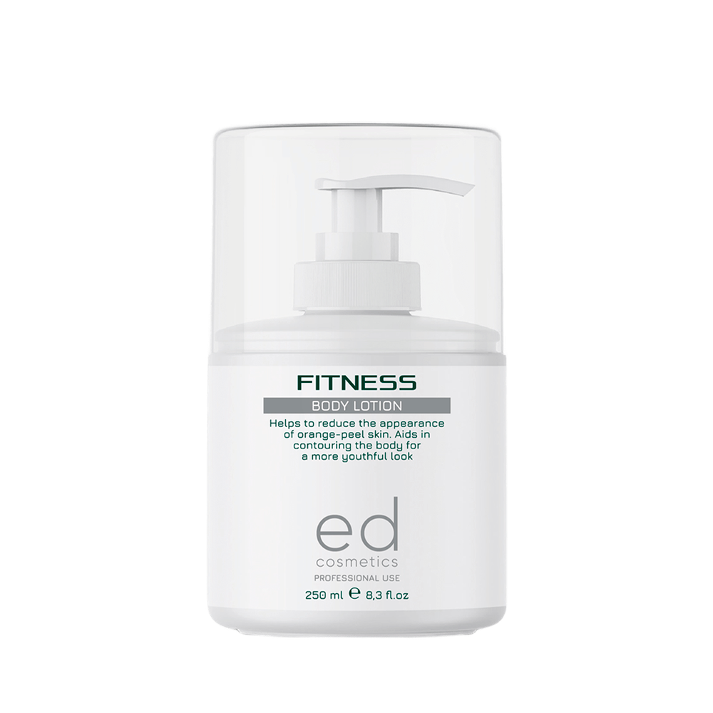 Лосьйон BODY LOTION FITNESS рекомендований для профілактики й корекції локальних жирових відкладень, зменшення проявів целюліту, підвищення тонусу шкіри. Забезпечує ефект “фітнес-догляду” вдома або у рамках професійних програм для моделювання фігури, антицелюлітних процедур та загального омолодження шкіри тіла.