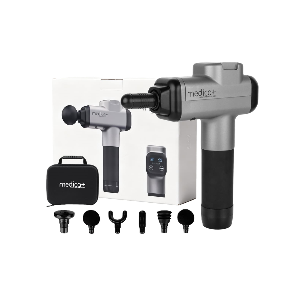 Перкусійний ручний масажер MEDICA+ MassHand Pro 6.0 має в наявності 6-ть насадок для масажу різних груп м'язів: спини та талії, бедер та сідниць, преса, вздовж хребта, рук та ніг.