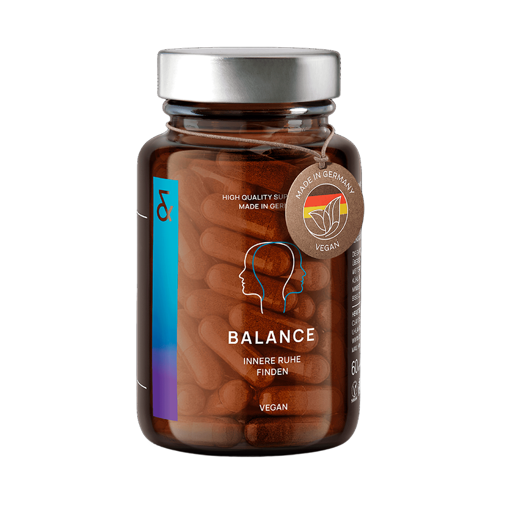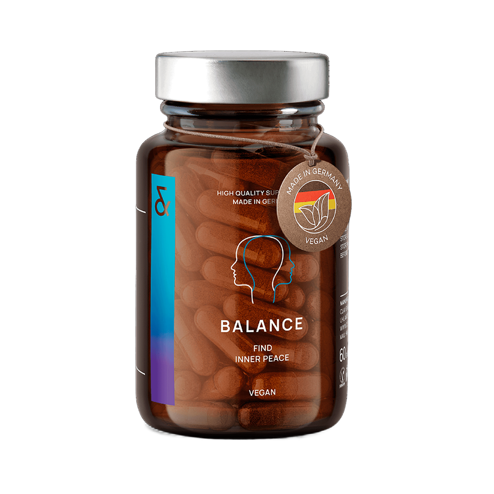 Дієтична добавка у формі капсул з рослинними екстрактами, вітамінами й мінералами. Формула Balance розроблена для підтримки нервової системи, стійкості до стресу і загальної емоційної рівноваги. Містить вітамін B12, що сприяє нормальному енергетичному обміну, та магній, який допомагає зменшувати нервове напруження й підтримує нормальну функцію психіки. Комплекс L-триптофану, родіоли рожевої, вітаміну B5, а також екстрактів ашваганди та женьшеню забезпечує м’який адаптогенний ефект, покращуючи стресостійкість, концентрацію уваги та якість сну.