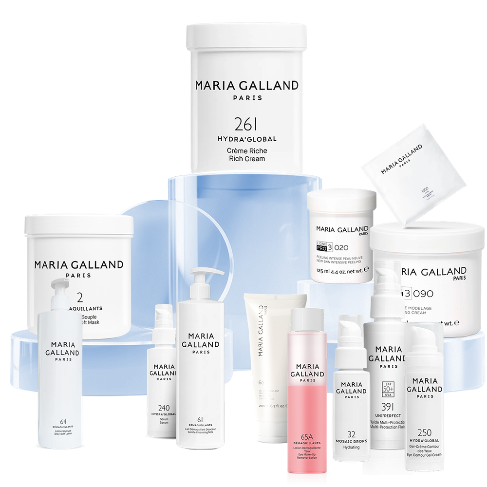 - Фінальний догляд для дегідратованої шкіри – 5 хвилин: сироватка 240 Hydra' Global Serum; крем для повік 250 Hydra'global Eye Contour Gel Cream; крем для обличчя, шиї, декольте 261 Hydra' Global Rich Cream; захист від УФ, синього світла та полютантів: 391 Multi-protection Fluid SPF 50+.