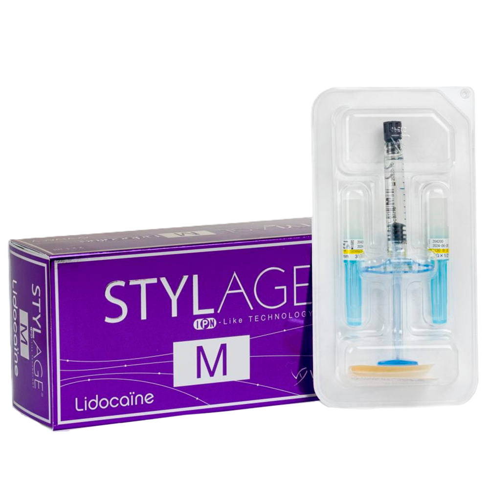 Stylage M Lidocaine – це інноваційний філер середньої щільності на основі зшитої гіалуронової кислоти, призначений для усунення середніх та глибоких зморшок, а також моделювання контурів обличчя. Формула препарату поєднує високу концентрацію гіалуронової кислоти (20 мг/мл) з антиоксидантами манітом і сорбітом, які захищають клітини шкіри від впливу вільних радикалів, зменшують ризик післяпроцедурних синців і набряків та подовжують тривалість ефекту лікування.