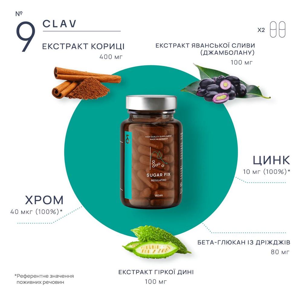 Дієтична добавка у формі капсул на основі рослинних екстрактів і мікроелементів, розроблена для підтримки здорового рівня цукру в крові. До складу входять високоякісні екстракти яванської сливи (джамболану), гіркої дині (момордики) та кориці, які традиційно використовуються для нормалізації рівня глюкози та підтримки метаболізму. Формулу доповнено цином та хромом — ключовими мікроелементами для регуляції рівня цукру в крові: хром підвищує чутливість клітин до інсуліну та сприяє стабілізації рівня глюкози; цинк є важливою складовою цинк-інсулінового комплексу підшлункової залози, бере участь у метаболізмі вуглеводів і підтримує нормальну функцію ендокринної системи.